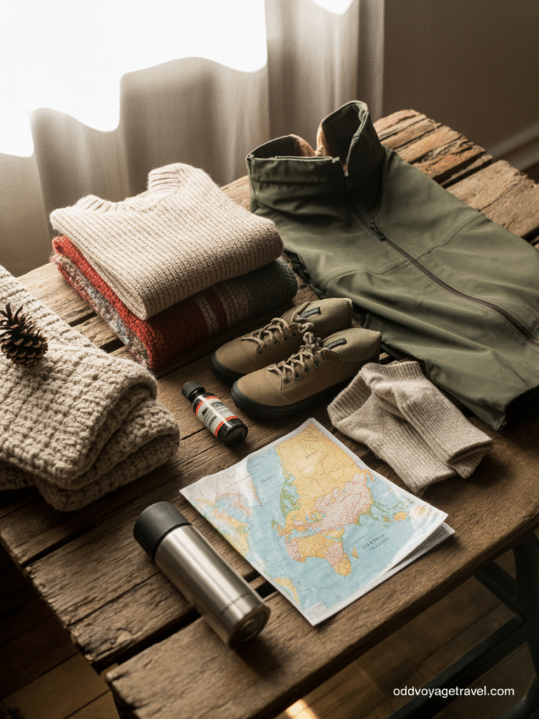 Packing for a coolcation requires a different mindset than tropical escapes. Here’s what seasoned travelers recommend: